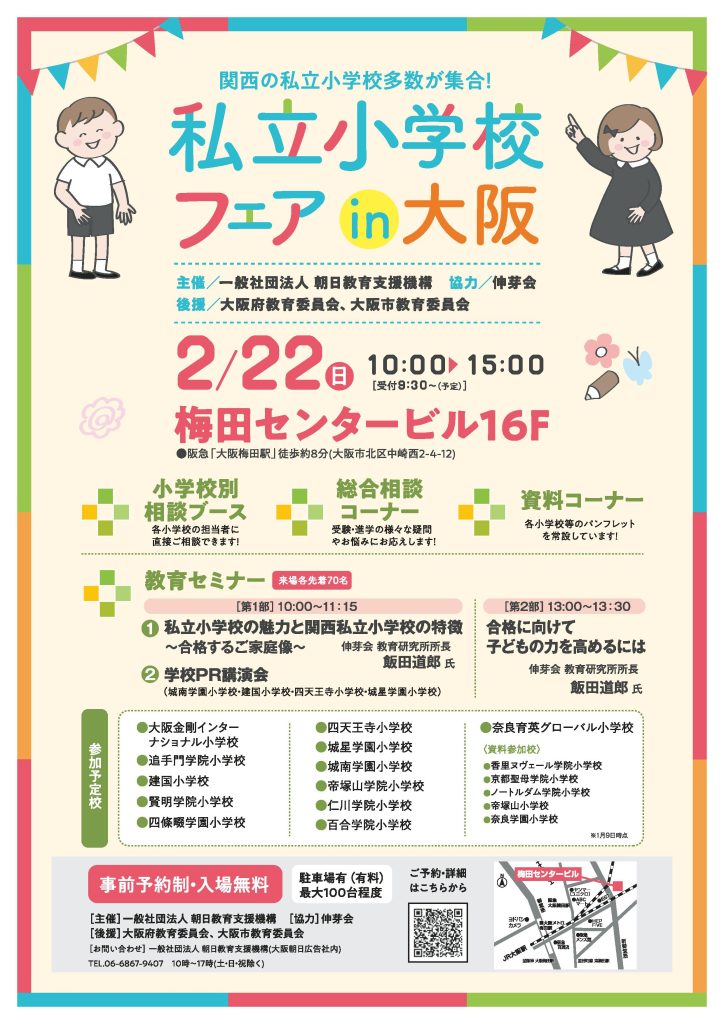 詳しくは、「私立小学校フェアin大阪」のホームページをご覧ください。