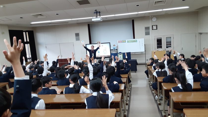4月8日(火)、142期生の入学式を挙行し、147名の新入生が追手門学院小学校に入学しました。入学式の後は、6年生のお兄さん、お姉さんと一緒に校舎見学をしました。142期生が6年間で大きく成長して行く様子が楽しみです。