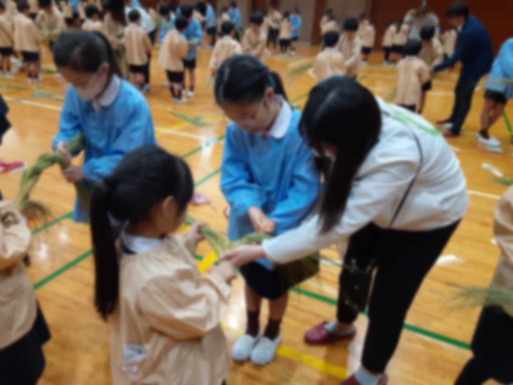 12月1日(月)、139期、142期がしめ縄づくり体験をしました。元 PTA 会長の杦田様をはじめ講師志村 剛様にお越しいただき、国産の青刈り藁を使ったしめ縄を作りました。児童は藁を編むことに苦労していましたが、上手に製作することが出来ました。