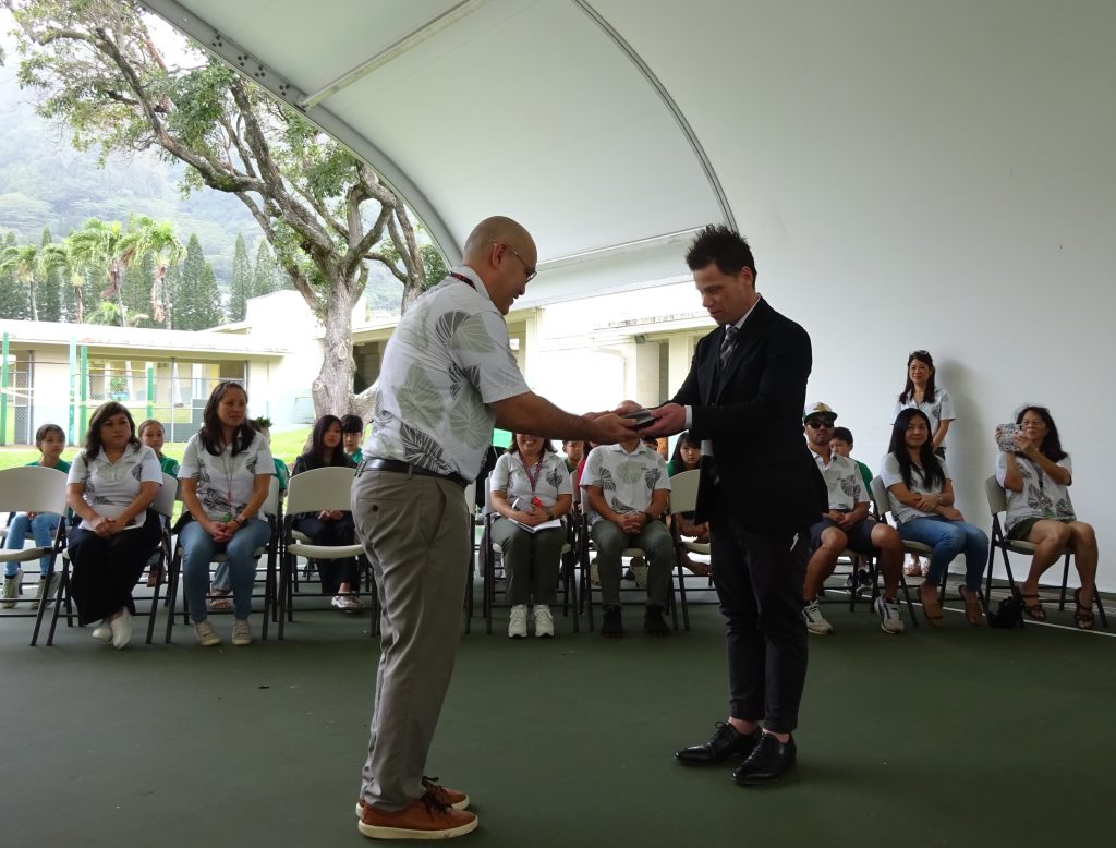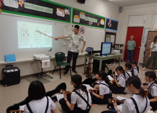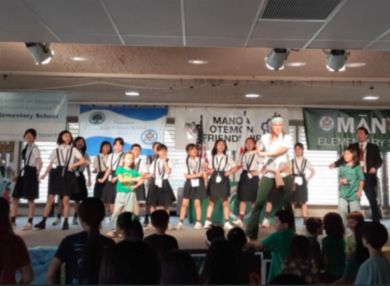 4・5日目はホスト児童とともに週末を過ごしました。6日目の本日は、ホスト児童ともに登校し、歓迎式典に参加しました。温かな雰囲気の中で迎え入れられ、スクールでの体験がスタートしました。その後は、各教室で授業に参加しました。ウクレレ体験ではハワイの文化に触れ、ランチルームでは、一緒に昼食をとりながら交流を深めました。さらに、ズンバを踊る活動では、言葉の壁を越えて一体感を味わうことができました。異文化の中で積極的に関わろうとする姿が随所に見られ、実りある一日となりました。