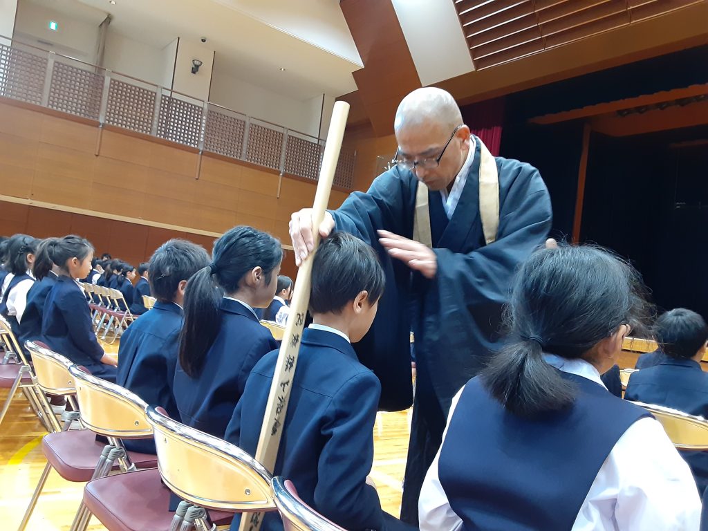 12月2日(火)黄檗宗緑樹院村瀬玄鼎和尚様にお越し頂き、座禅会が行われました。希望された保護者の方々にもご参加いただきました。座禅会は昭和42年より続く、伝統ある行事です。姿勢を正し、心を落ち着かせて自分を見つめなおす良い機会となりました。