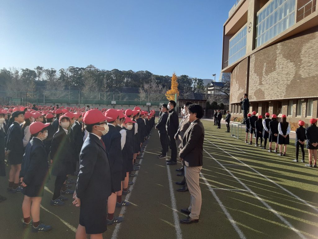 今日は2学期最終日でした。終業式が行われ、校長先生から、「今年の振り返り」と「規律正しい追手門の子として冬休みを過ごしましょう」というお話をいただきました。