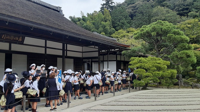2025.10.24 NEW 6年 校外学習 10月20日(月)、6年生は京都方面に校外学習に出かけました。鹿苑寺や慈照寺、二条城を訪れました。当日は各自のタブレットで写真撮影をしました。今後の社会科での新聞作りに役立てる予定です。 スクールレポート一覧に戻る
