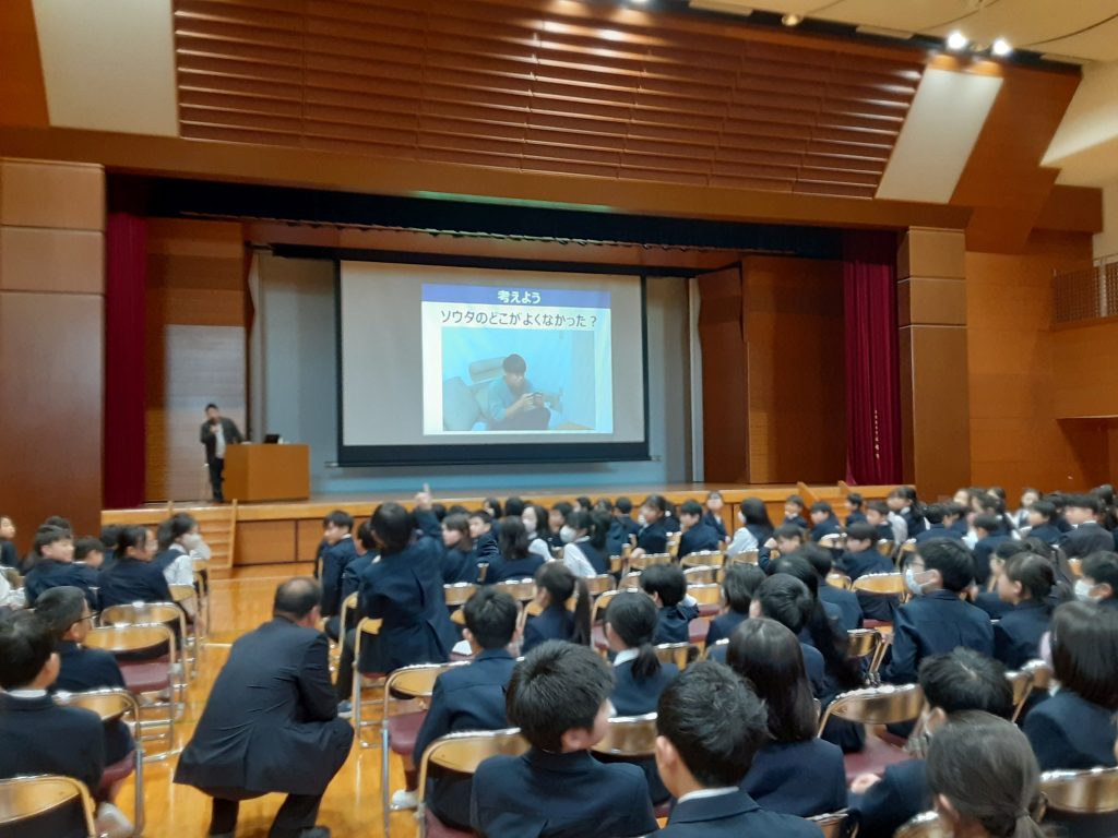 2月2日(月)、兵庫県立大学の竹内和雄教授をお招きし、6年生保護者および3~6年生児童を対象にSNS講演会を実施しました。本校の実態を踏まえながら、インターネット上で起こりやすいトラブルについて、具体例を交えて分かりやすくお話しいただきました。